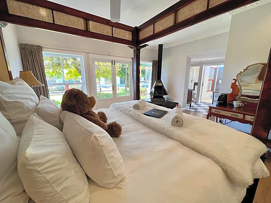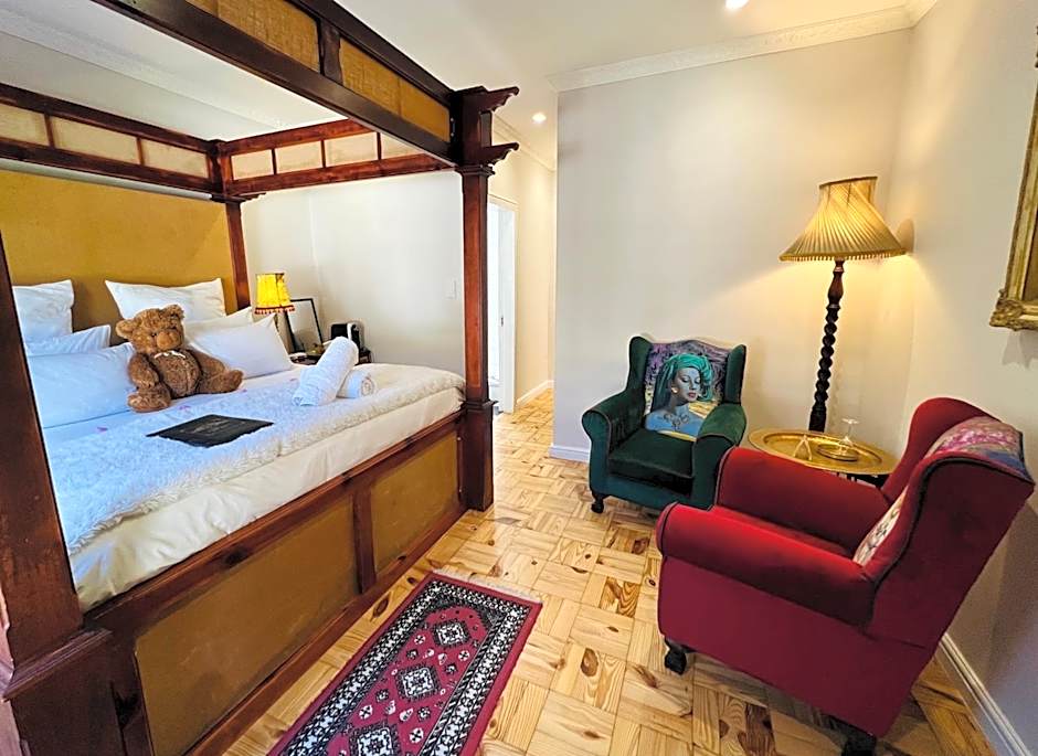 This room features a king-size four-poster bed with a feather duvet. The double doors open onto a private garden with a koi pond. There is also a fireplace for chilly winter evenings. The bathroom features a free-standing bath.