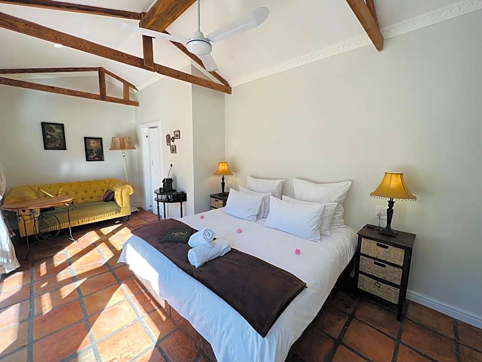 The garden rooms are accessed excess through the main house and each room overs views over the garden and animals. These light and spacious rooms have king size beds which can be converted to two single beds. The room is equipped with a coffee machine, bar fridge, TV and fan. The private bathroom has a shower. Guests have access to the fully-equipped, communal kitchens in the manor house, as well as other shared facilities.